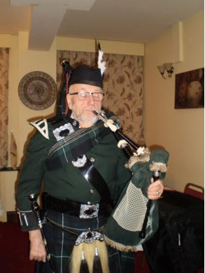 We then join the Burns Night celebration when the Haggis is piped into the room by our very own Bill Smith, who will be our Chairman next year.